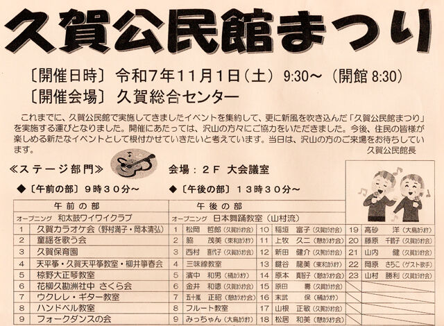 第1回久賀公民館まつりのステージ部門に黄・緑組が出演します。