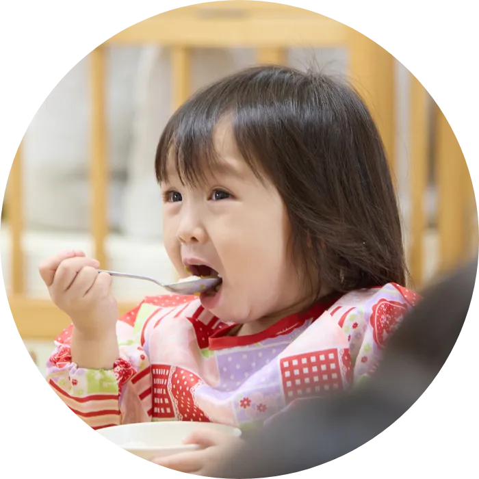 専任調理師が毎日給食を用意します。温かい食事は食欲を促し、好き嫌いの克服にも繋がります。