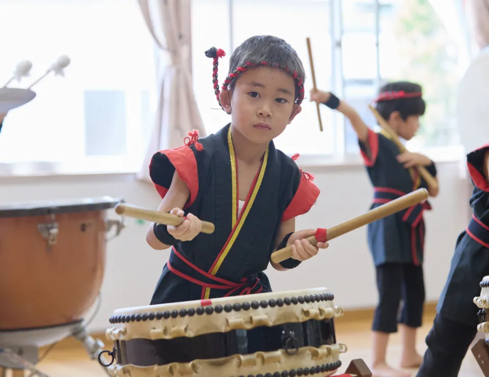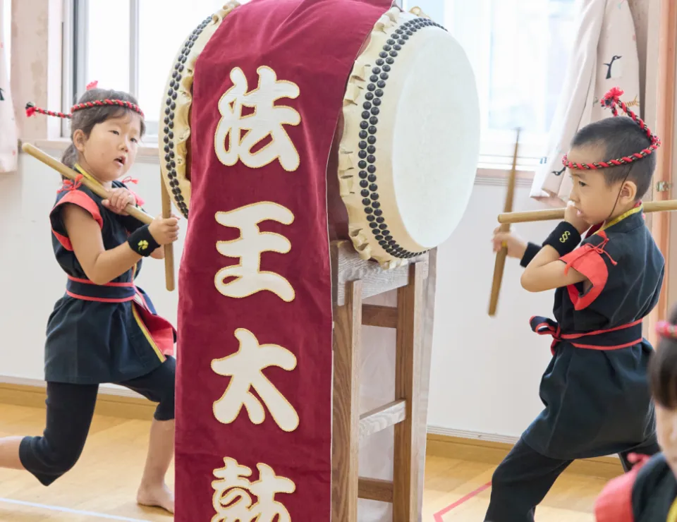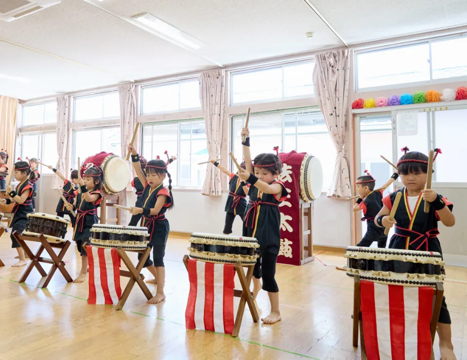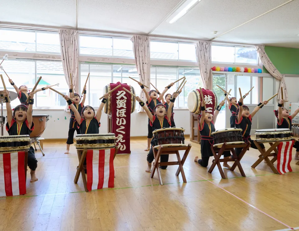 久賀保育園では、和太鼓(法王太鼓)を保育に取り入れています。